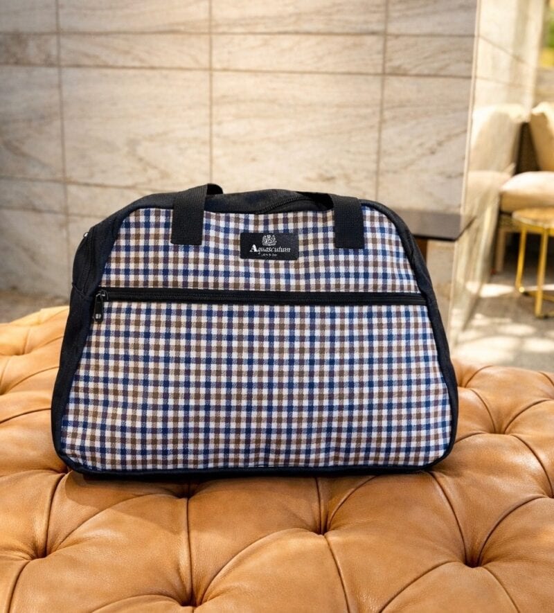 普段は、大きめのバッグひとつで仕事へ向かうことがほとんど。けれど移動が多く、荷物が多いこの日はコンパクトなショルダーバッグとアクアスキュータムのボストンバッグを組み合わせて出かけました。