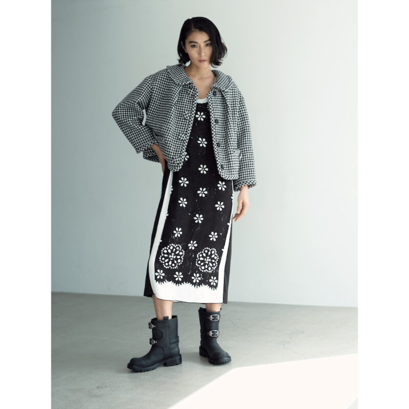 ジャケット7万8100円、ワンピース4万7300円、ブーツ7万8100円(すべてマーク ジェイコブス/マーク ジェイコブス カスタマーセンター)