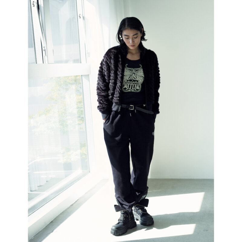 ジャンパー4万4000円、トップス1万6500円、ベルト2万7500円、ブーツ4万4000円(すべてヒステリックグラマー) スエットパンツ2万900円(トゥ)