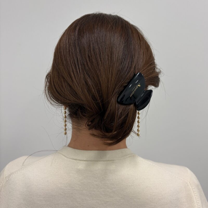 こちらのヘアクリップは、アクアスキュータムのゴールドのロゴ入りで高級感があり、アラフォーにはありがたいシンプルなデザインです。私はロングヘアですが、フルアップにしても、このヘアクリップ一つでしっかりと留まるくらい安心安定のホールド感です。また、大きくはないサイズだからこそ、ハーフアップにしてもバランス良くアレンジができます。仕事中、「髪をまとめたいな」と思った時、自席で鏡を見ずにササっと使えるところが嬉しいです。これは、職場の必須アイテムになってくれそうです。最近、新しいヘアアクセサリーを買うことがなかったのですが、気分が上がるアイテムを手に入れることができました!