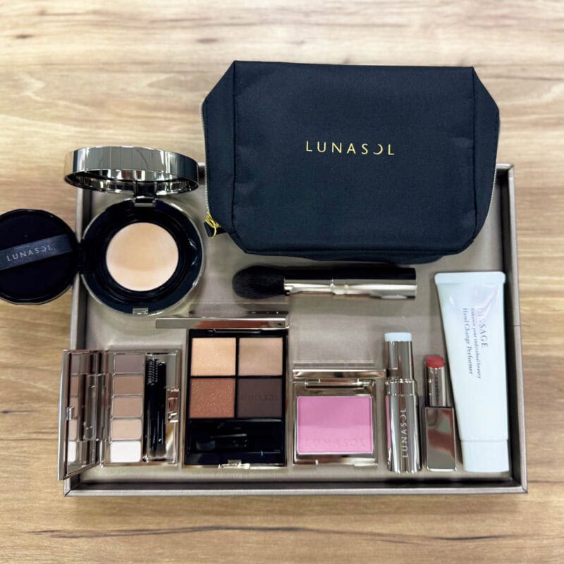 公式ECで誕生月に購入金額に応じてプレゼントしているルナソルオリジナルポーチです。大容量で口が広いので、中身が探しやすいです。