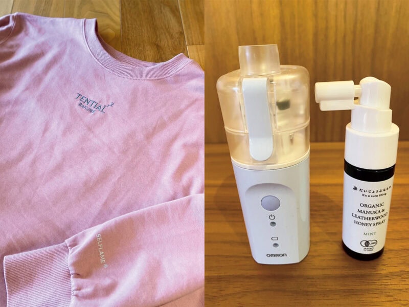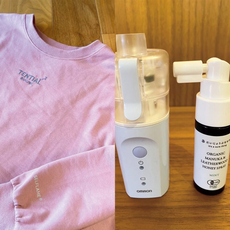 左:超音波式 ネブライザ(オムロン) 右:だいじょうぶなもの オーガニック マヌカ&レザーウッドハニースプレー(Takakura) 「宝塚出身の俳優さんと共演した時に教えてもらい、以来手放せません!」