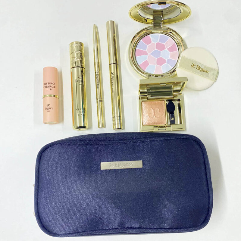 「エレガンス」のノベルティポーチ。仕切りがついているので、リップなどの小さいメイクものを入れるのにもとても便利です。