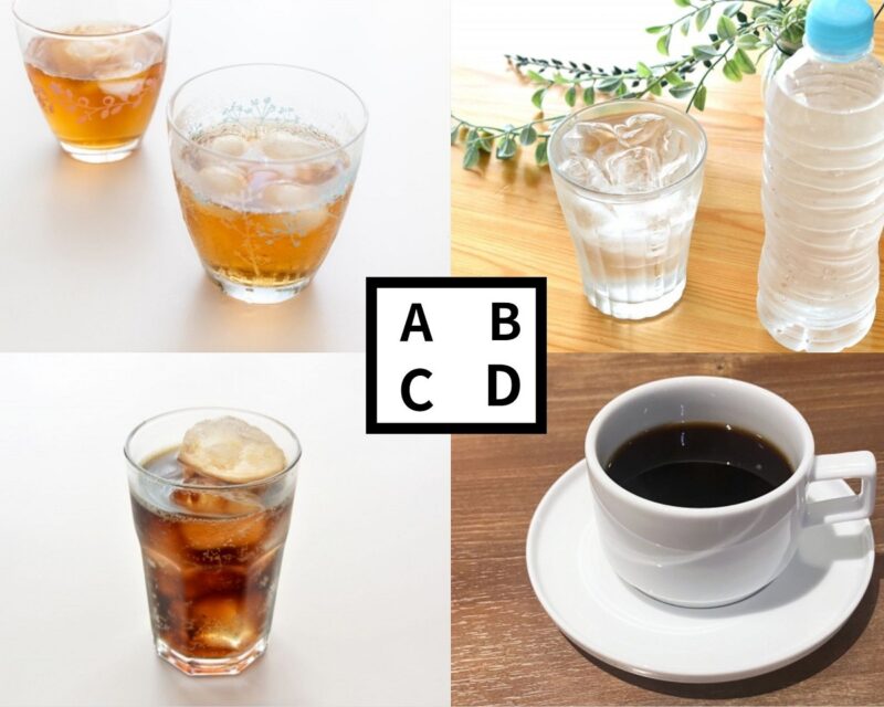 A:烏龍茶 B:水 C:コーラ D:コーヒー