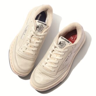 「ヘリ―ハンセン」や「ネイバーフッド」などとのコラボに続き、「リーボック」と初タッグ。1980年代のクラシックなテニスシューズにヒントを得たシンプルなデザインで、大人カジュアルにもきれいめの装いにも映える万能さが魅力。