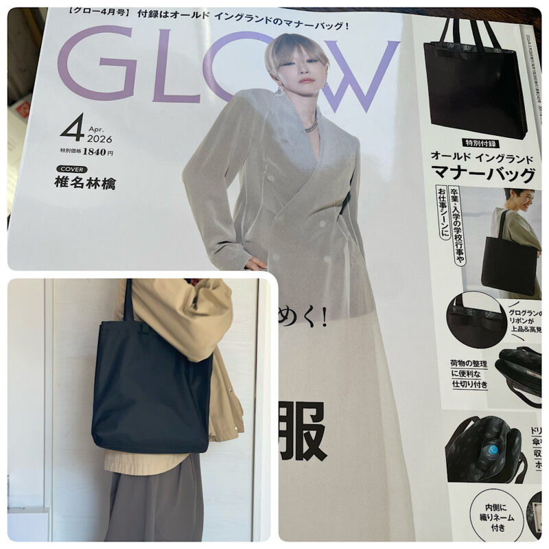 かっこよい椎名林檎さんが表紙のGLOW4月号の付録は、オールド イングランド マナーバックです!