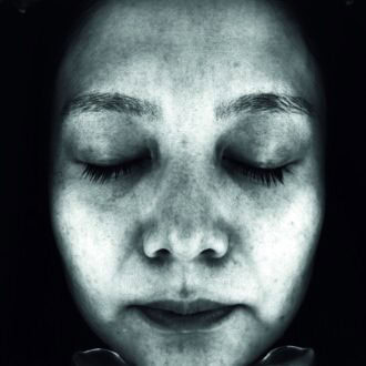 シミや毛穴が確認しやすいモノクロ画像。夏の終わりでくすみ※4が出やすい時期には、集中ケアとして角層にアプローチする化粧品(次の画像で紹介)を使用。肌全体にハリが生まれ、自信が持てる肌に変化!