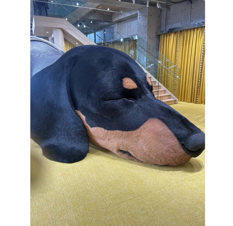 3月19日にオープンの前日、メディアに解放された「タンバリンズ 代官山フラッグシップストア」。入り口を入ると、すぐに13mの巨大なダックスフンドのサンシャインくんがお出迎え。精巧なエンジニアリングを通じて、小さな筋肉の震えや呼吸もするという本物ならではのオブジェを拝見して思わず感動!