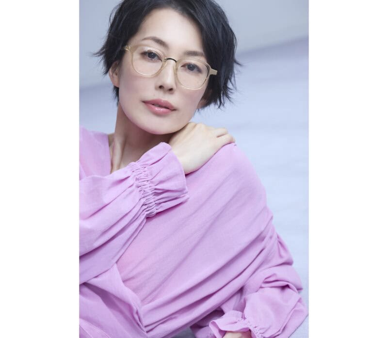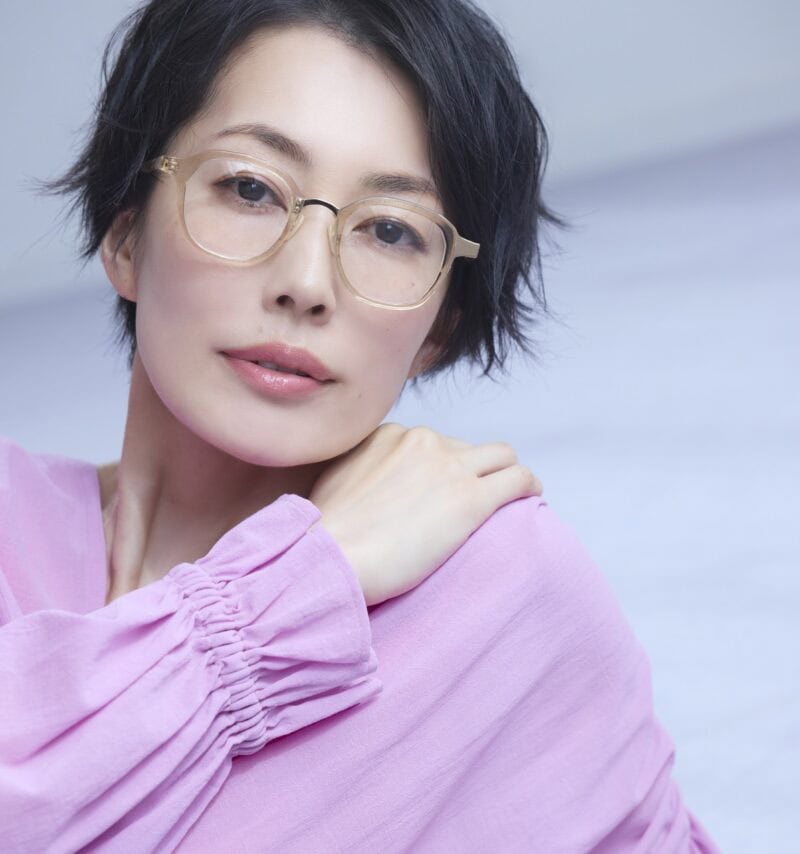 クリアなベージュの透明感がいい感じ。個性的なのに肌なじみがいい」(松田さん) 眼鏡”MM-0071”6万6000円(MASAHIROMARUYAMA/コンティニュエ)