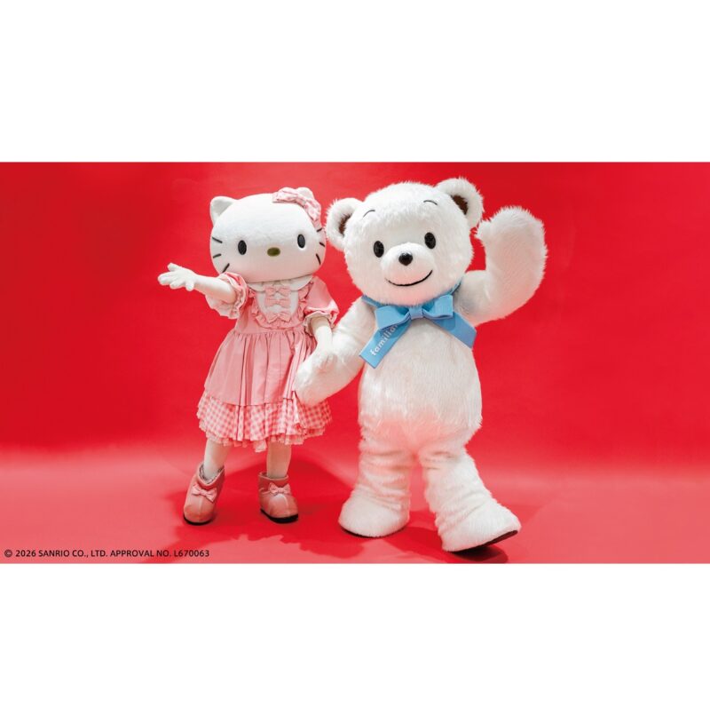 コラボレーションを記念して、ファミリア神戸本店にフォトスポットが登場。ファミちゃんとハローキティと一緒に写真が撮れる撮影会も開催します!