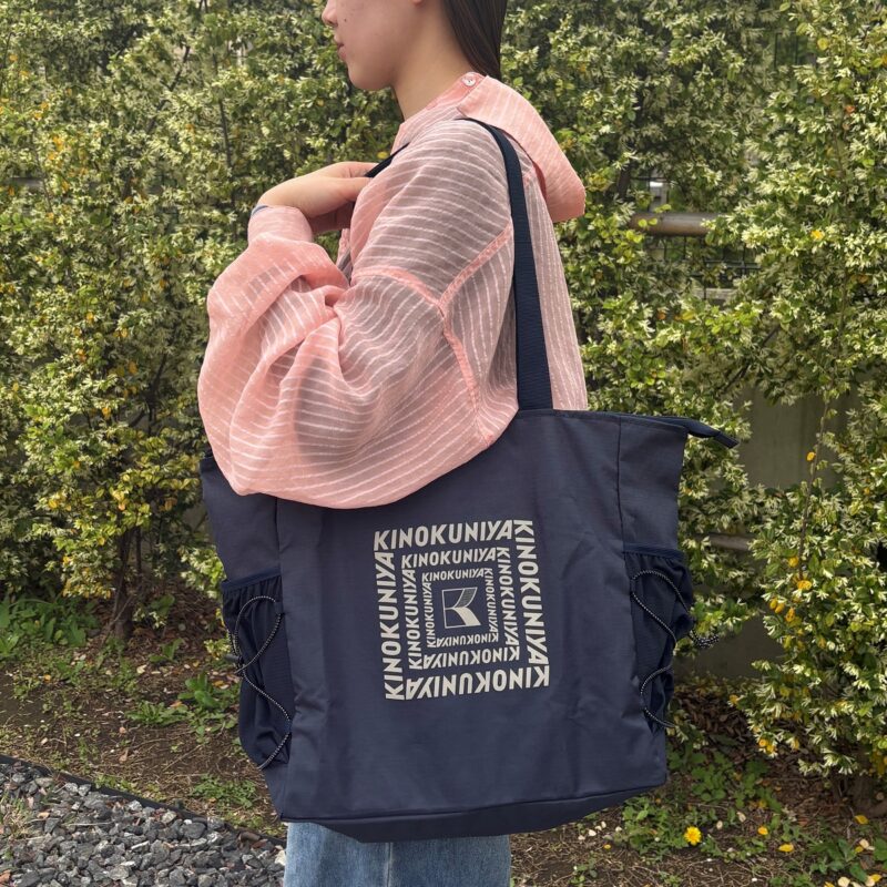 ネイビーカラーとKINOKUNIYAのロゴが上品にマッチ。サイドのドローストリングもポイント。ほどよいカジュアル感で40代女子も欲しくなっちゃう素敵デザイン!