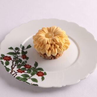 幾重にも重なる繊細な花びらが美しい「マダガスカル産バニラとピーカンナッツのフラワーケーキ」。