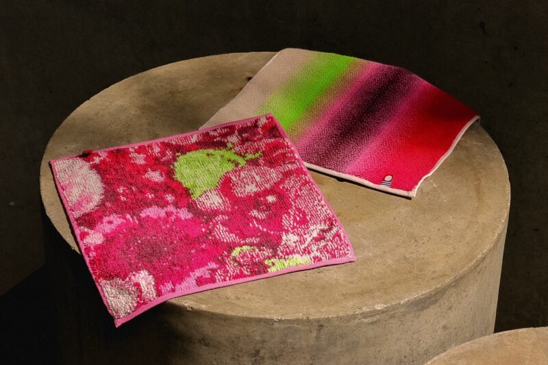 こちらは、コンビニエンスウェアの今治タオルハンカチにおいて代名詞ともいえるグラデーションを表現。ニコライバーグマンらしい華やかさに大人女子もうっとり。