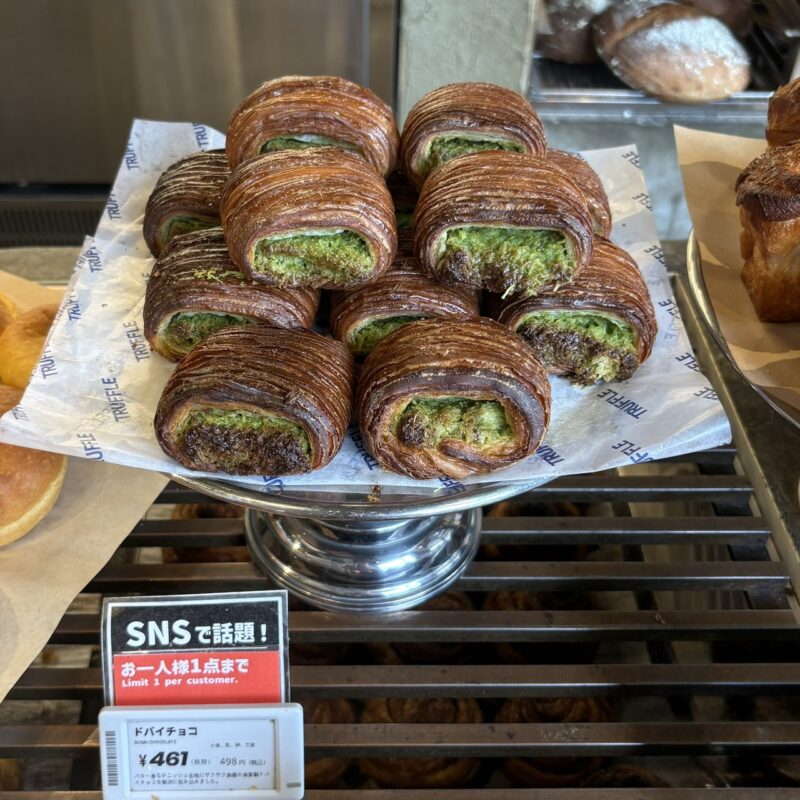 SNSで見かけ気になっていた、トリュフベーカリーのドバイチョコパン!が、さすがの大人気で、先日、お昼過ぎにうかがったときには既に売り切れ。別日には、人気すぎて材料も欠品してしい入荷待ちだと、、、満を持してこの度、朝イチでお邪魔しました!やっとお目見えできた、神々しいドバイチョコパン~~!人気すぎて1人一つの制限があるため、残念ながら家族分は買えませんが、私が独り占め、じゃなくて(笑)、ブログのためにしっかり味わわせていただきます!