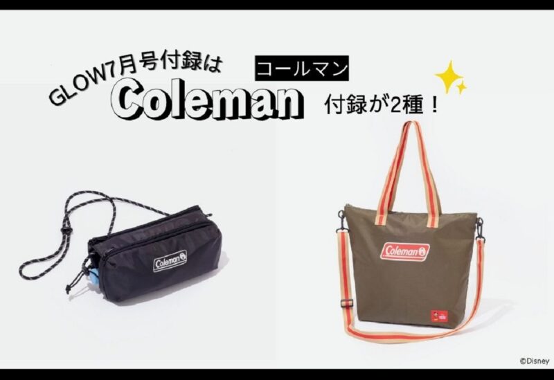 GLOW7月号付録&増刊付録は大人気アウトドアブランド【コールマン】とのコラボ!通常付録はさりげない目隠しミッキーが可愛い♡「ディズニーデザイン コールマン2WAYはっ水トート」増刊付録はこれひとつで身軽におでかけ!「コールマン ダブル収納ボトルショルダーバッグ」これからの梅雨の時期や夏に活躍すること間違いなし!の【コールマン】の付録の魅力をお届けします。