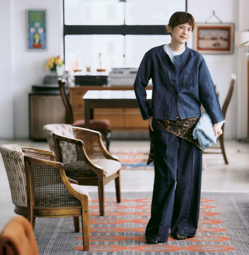 ヘンプ混デニム9分袖シャツ4990円※ 店舗により在庫状況が異なります(無印良品/無印良品 銀座) Tシャツ4950円(ヘルシーデニム/ゲストリスト) デニムパンツ4万4000円(エンダレンス) スカーフ2万9700円(マニプリ/ピモンテ) ネックレス3万