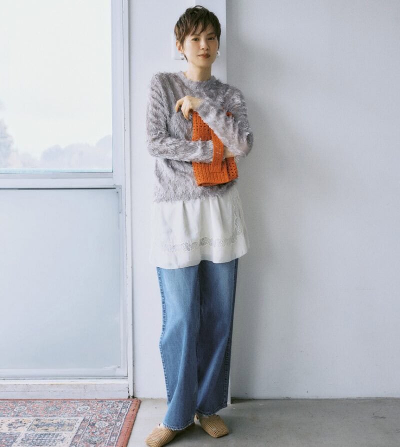 スカート5499円 トップス2万4000円(シーニュ) デニムパンツ2万7500円(アッパーハイツ/ゲストリスト)