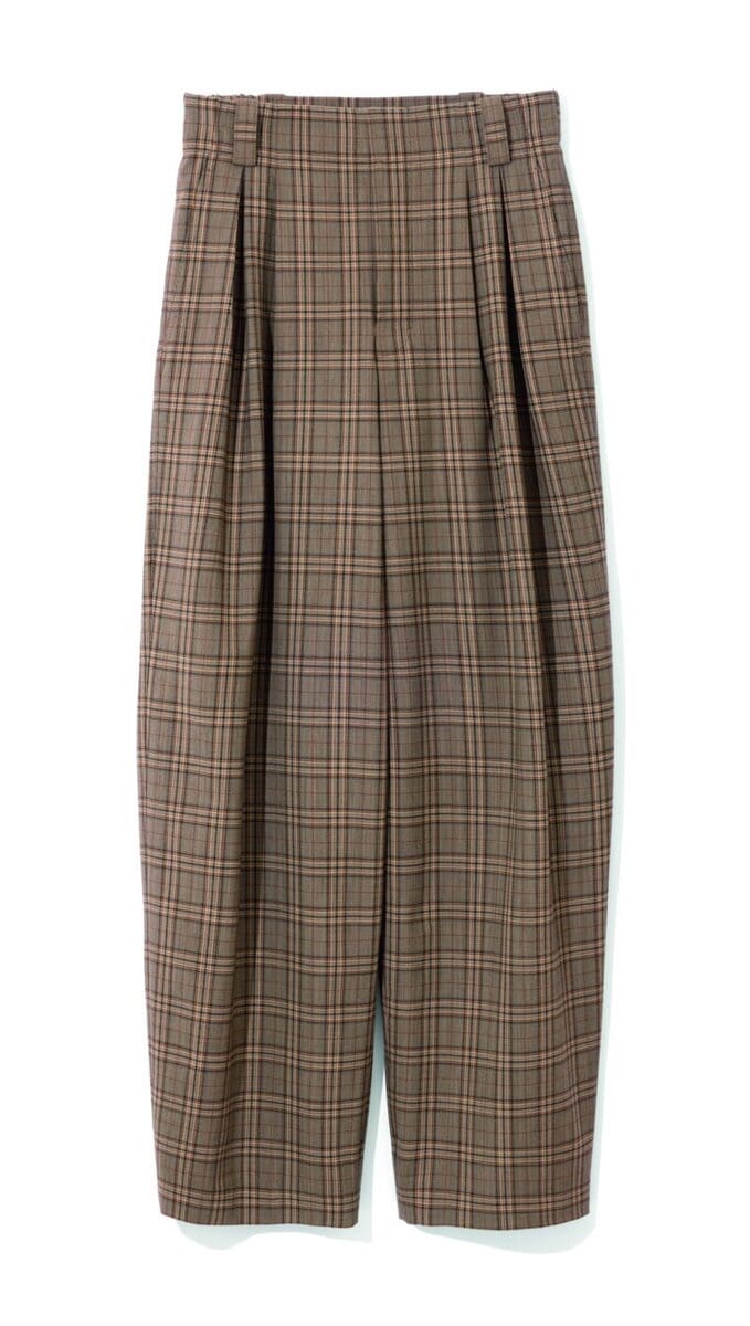 秋と相性のいいブラウンのチェック柄。バレルシルエットなら今年らしいトラッドを堪能できる。12万円(COATE /メゾン・ディセット)