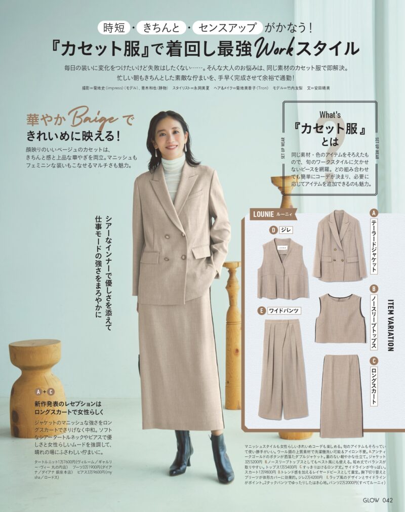 40代は、仕事も家庭も忙しく、社会的な役割も大きくなる時期。お洒落もライフスタイルも「ただ好きだから」だけではなく、きちんと感や実用性が求められます。『GLOW』11月号では、プラステとのコラボ付録「リボン付き上品トート」を軸に、秋の新定番カラー、賢いワークスタイル、セルフケアまで、40代の毎日を支えるヒントを総特集。人生の大切な場面を、自信をもって迎えるために。