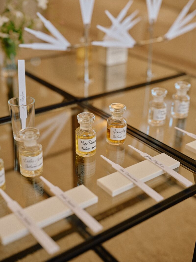 ジャスミン畑を後にした二人は、シャネル専属調香師オリヴィエ・ポルジュとの特別なセッションへ。複数のジャスミンの香りを試しながら、香りが唯一無二のフレグランスへと昇華していく過程を体感。