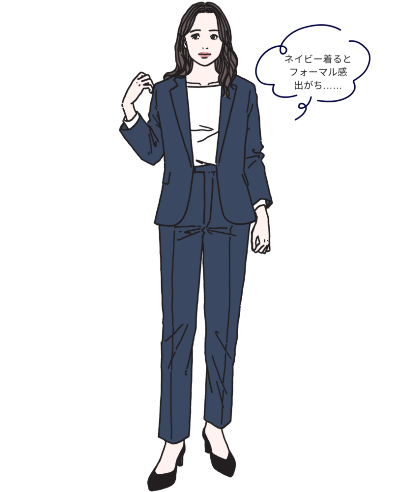 装いに品格と知的なムードを与えてくれるネイビーは、大人カジルュアルを格上げするキーカラー。でも生まじめすぎるとフォーマルっぽく見えたり、制服みたいに地味になったりしがちに。似合う色をしっかり選んで、抜けを作るのがこなれるポイントです。