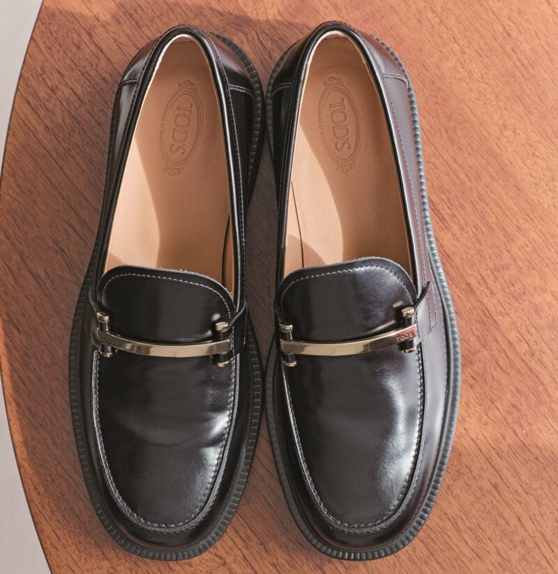 メタルバレッタのクールな存在感が一味違う印象に。ローファー[H3cm]12万7600円(トッズ/トッズ・ジャパン)