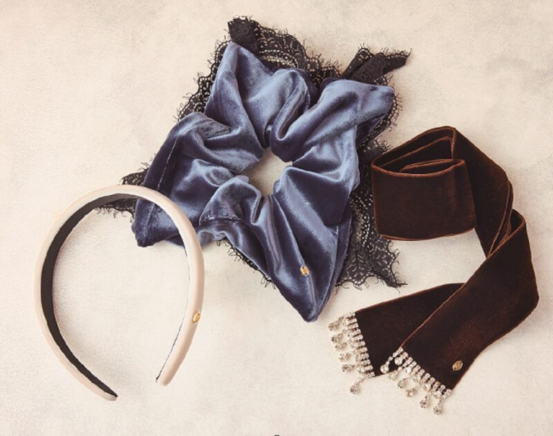 左から:ベロアカチューシャ※EC限定カラー7920円、ベロアレーススクエアシュシュ7260円、ベロアリボン5940円(すべてミュシャ/マッシュスタイルラボ)
