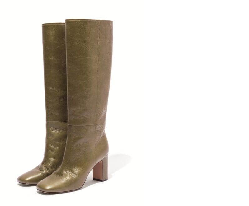 60~70年代に人気を博したレトロなセミスクエアトゥを現代風にアップデートし、スタイリッシュに進化させた美シルエットブーツ。ムードのあるモスグリーンが着こなしのスパイスに。