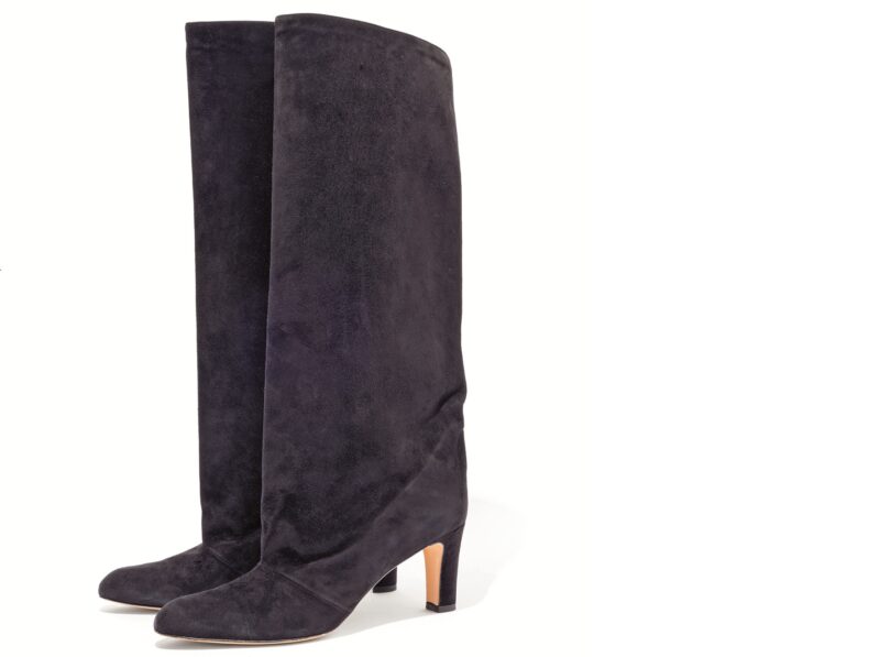 定番ロングブーツを、上質できめ細やかなスエードで。ストンとした筒のボリュームが脚長バランスをメイクする。はくと瞬時に洒落て見える太い筒が特徴。ボトムの裾もインしやすい。