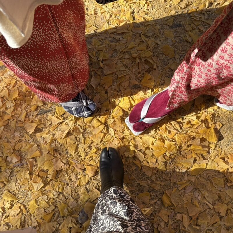 外苑前の銀杏並木はほとんど落葉してしまっていて、1~2割しか残っていなかったのですが、その分、落ち葉が黄色い絨毯に。お天気もよく、青空に黄色が映えて、とても良い写真が撮れました。