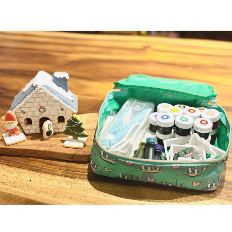 現在発売中のGLOW1・2月号の合併号の付録、MOOMINの収納ケースは可愛くて大きさ的にも使いやすいんです。緑色なのでクリスマス気分も高まり、アイシングクッキーのカラーと今回使う型、OPP袋、シーラーがちょうど入って持ち運びに便利でした。