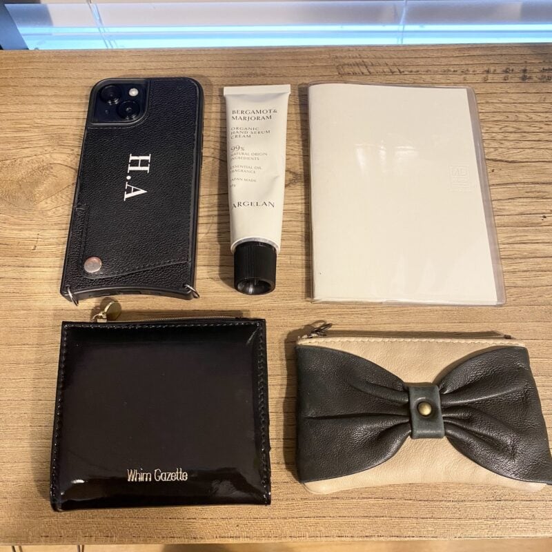 ちょっとそこまで〜などはこの2つで完結ですね。普段使いは小さいのが一番!でもお財布も持っていたいのでコレです。私は1年間願いを込めてリアル使いしますよ♡