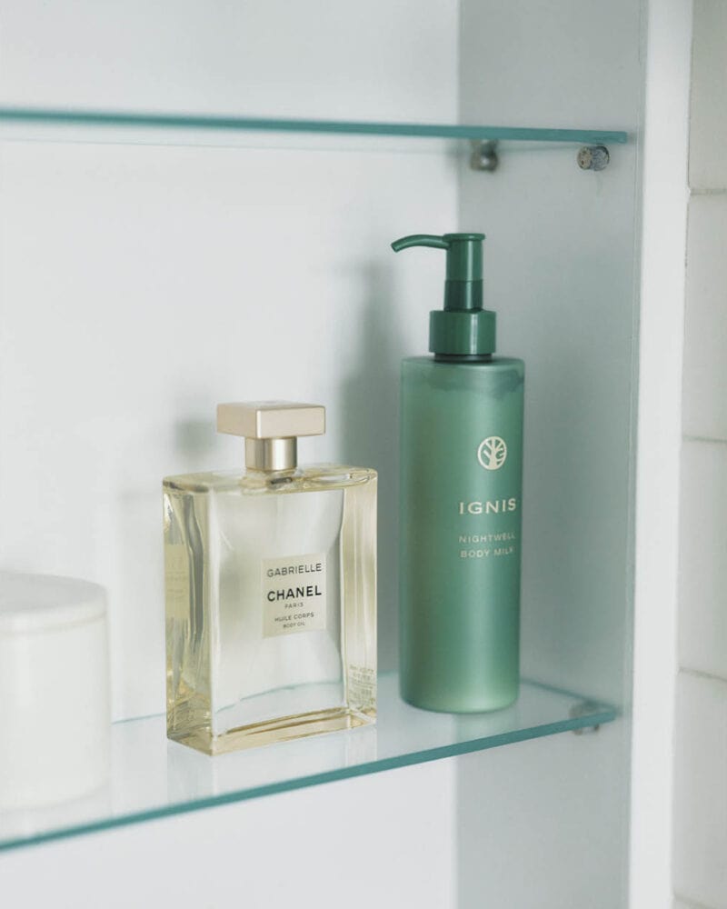 右:全身を包み込むのは、柚子の香りとコクのあるテクスチャー。深いリラックス効果をもたらし、心地よい眠りへ。ナイトウェル ボディミルク 240mL 4400円(イグニス)