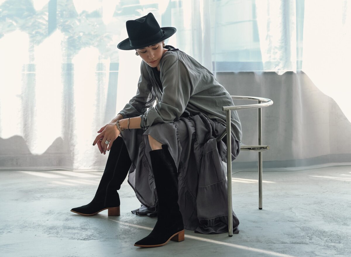 しなやかなスエードに、シュッと尖ったノーズ、フェミニンとモダンのバランスがちょうどいい粋なブーツを主役に。